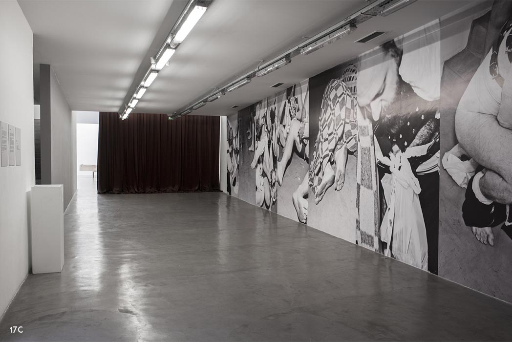 COBRE MISERIA MIERDA. Detalle de instalación fotográfica en sala. Plotter sobre pared.