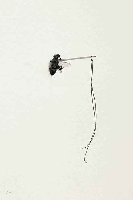 Escultura de pared: abeja, aguja e hilo. Medidas: 5 x 8 cm.